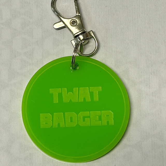 Twatbadger Keyring in either black, green or clear acrylic. Perfect gift for the twat badger in your lift,
